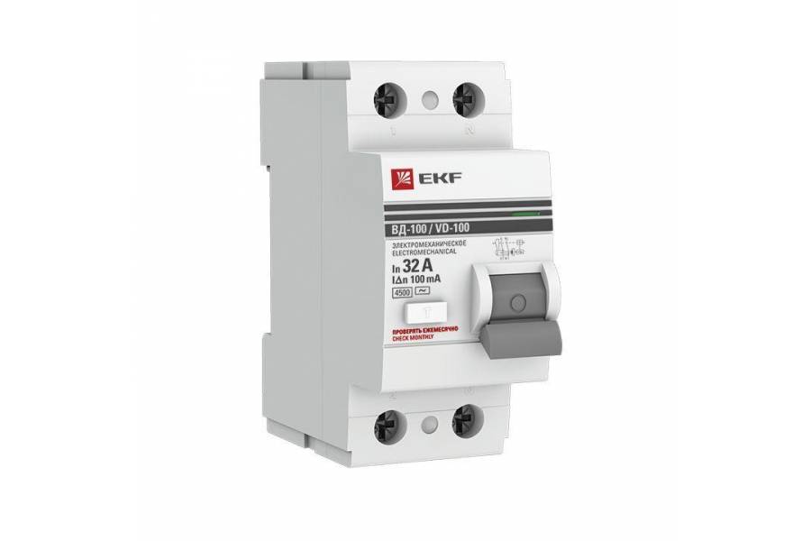 Выключатель дифференциального тока (УЗО) 2п 32А 100мА тип AC ВД-100 (электромех.) PROxima EKF elcb-2-32-100-em-pro