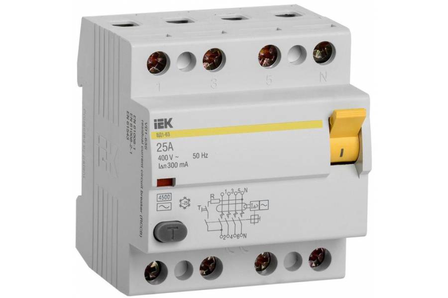 Выключатель дифференциального тока (УЗО) 4п 25А 300мА тип AC ВД1-63 IEK MDV10-4-025-300