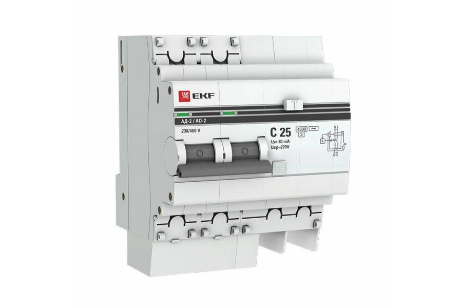 Выключатель автоматический дифференциального тока 2п 4мод. C 25А 30мА тип AC 4.5кА АД-2 PROxima EKF DA2-25-30-pro