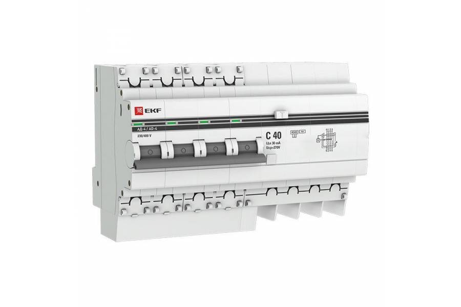 Выключатель автоматический дифференциального тока 4п 7.5мод. C 40А 30мА тип AC 4.5кА АД-4 PROxima EKF DA4-40-30-pro