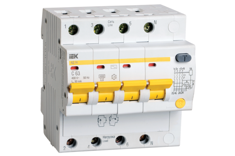 Выключатель автоматический дифференциального тока 4п C 50А 100мА тип AC 4.5кА АД-14 ИЭК MAD10-4-050-C-100