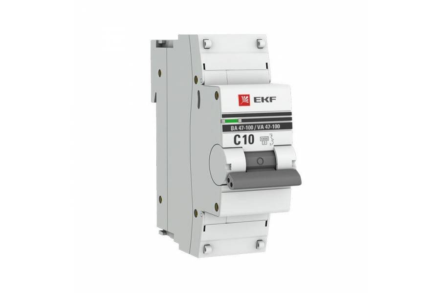 Выключатель автоматический модульный 1п C 10А 10кА ВА 47-100 PROxima EKF mcb47100-1-10C-pro