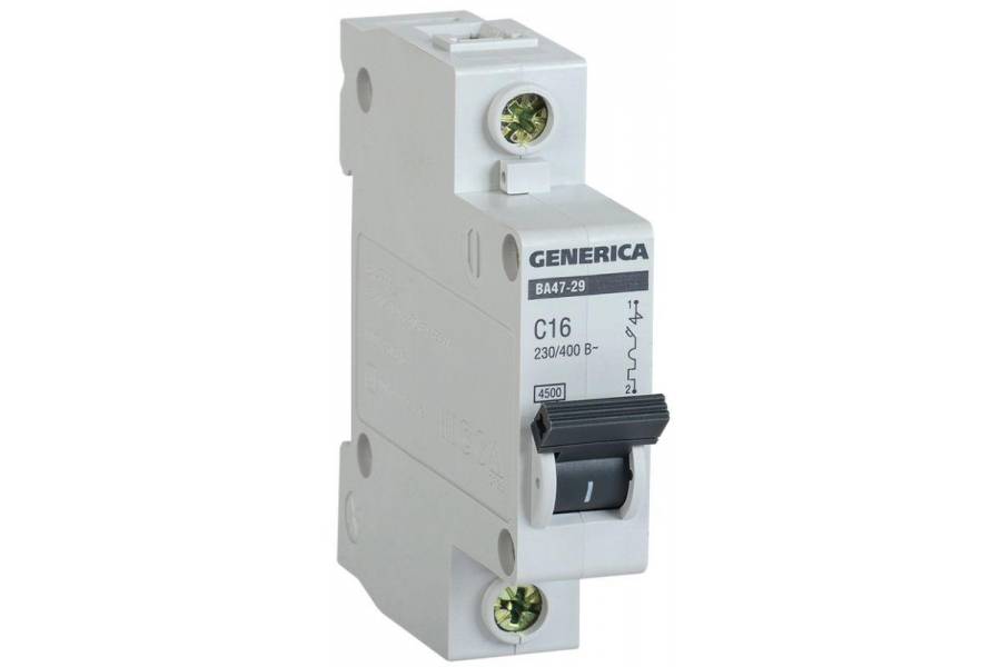Выключатель автоматический модульный 1п C 16А 4.5кА ВА47-29 GENERICA IEK MVA25-1-016-C
