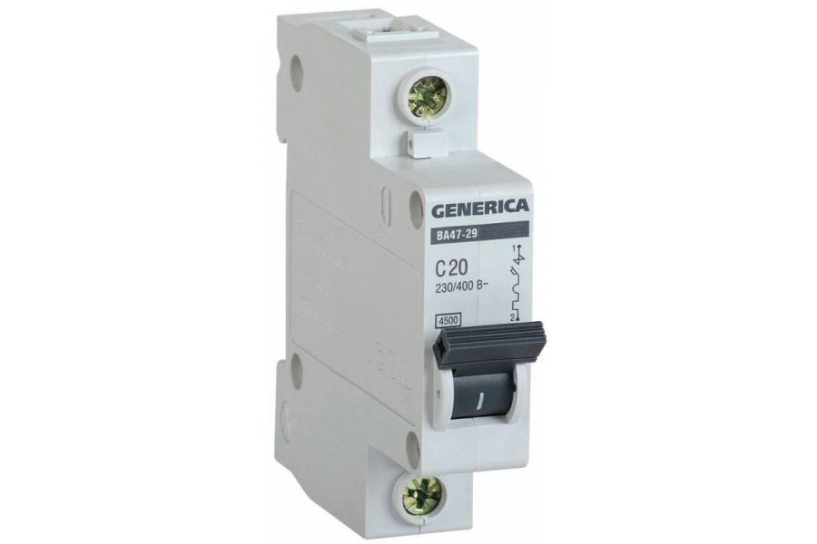 Выключатель автоматический модульный 1п C 20А 4.5кА ВА47-29 GENERICA IEK MVA25-1-020-C