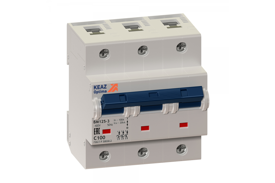 Выключатель автоматический модульный 3п C 80А OptiDin BM125 8ln УХЛ3 КЭАЗ 138543