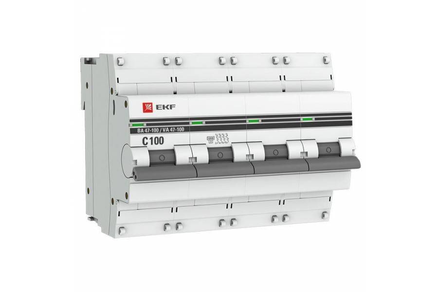 Выключатель автоматический модульный 4п C 100А 10кА ВА 47-100 PROxima EKF mcb47100-4-100C-pro