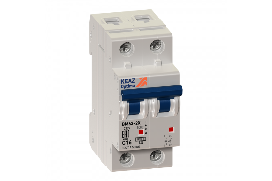 Выключатель автоматический модульный 2п C 50А 6кА OptiDin BM63-2C50-УХЛ3 КЭАЗ 260608
