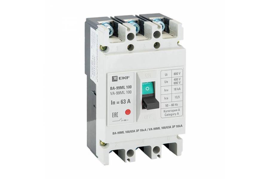Выключатель автоматический 3п 100/63А 18кА ВА-99МL Basic EKF mccb99-100-63mi