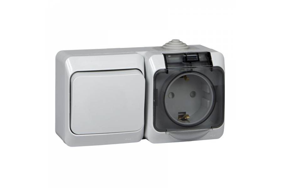 Блок ОП Этюд (1-кл. выкл. + евророз. защ. шторки) IP44 сер. SchE BPA16-241C