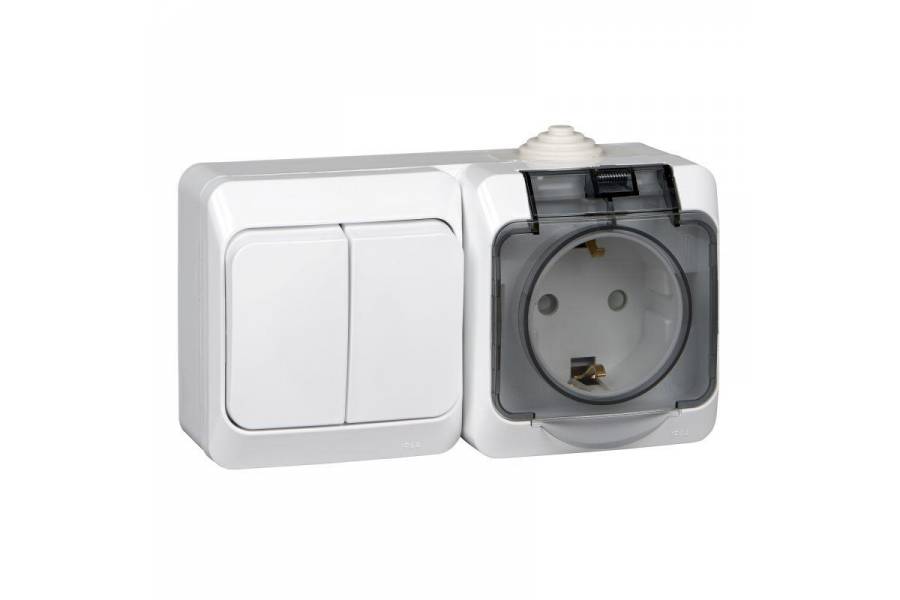 Блок ОП Этюд (2-кл. выкл. + евророз. защ. шторки) IP44 бел. SchE BPA16-242B