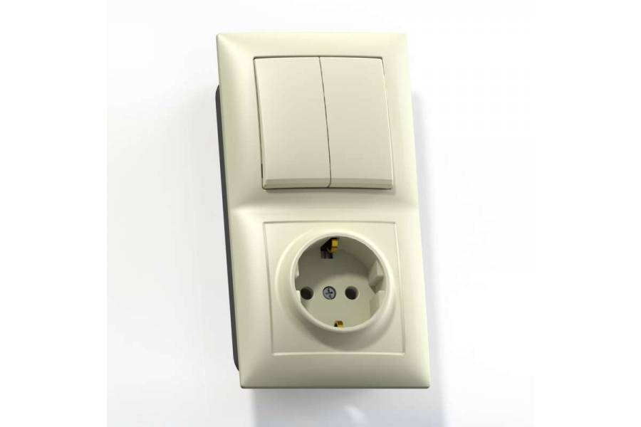 Блок СП БКВР-412 Селена (2-кл. выкл. + розетка с заземл.) сл. кость Кунцево 8177