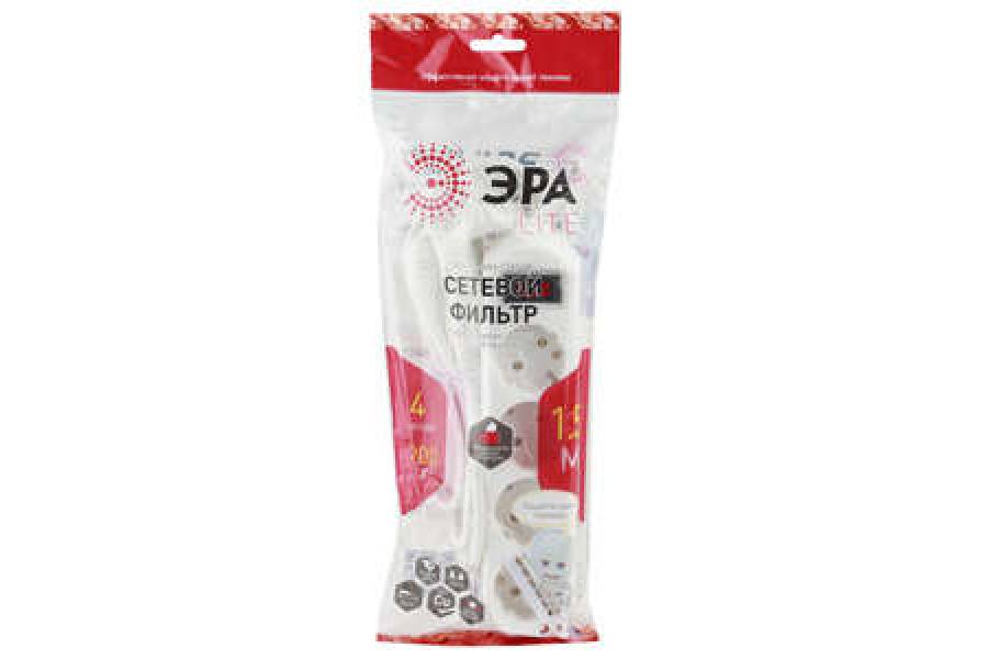 Удлинитель с сетевым фильтром 4х1.5м USF-M-4es-1.5m-W с заземл с выкл. ПВС 3х0.75 бел. ЭРА Б0019741