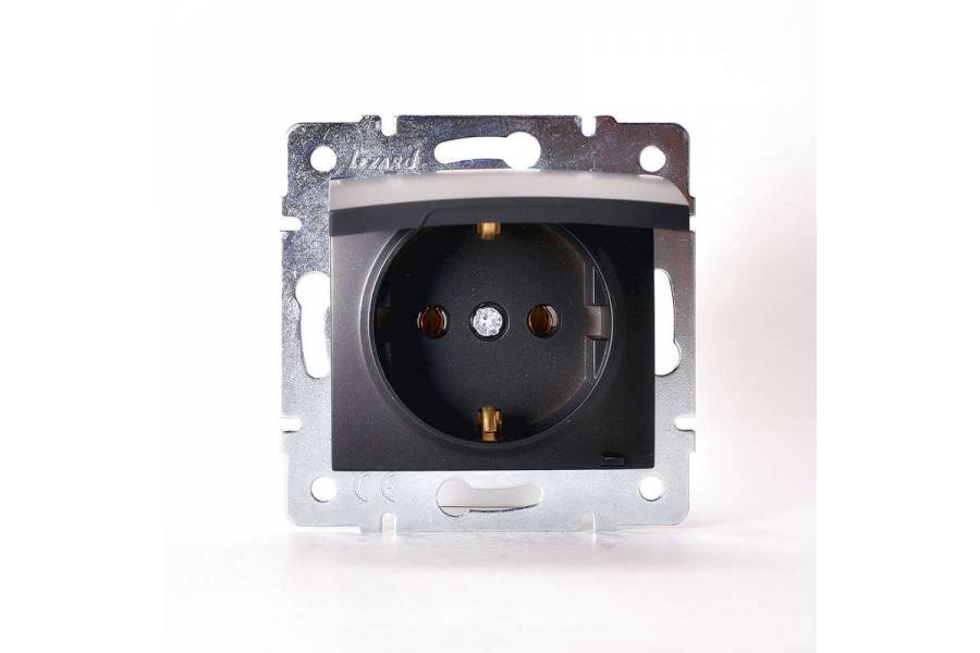 Механизм розетки 1-м СП KARINA с защ. крышкой термопласт с заземл. черн. бархат LEZARD 707-4288-123B