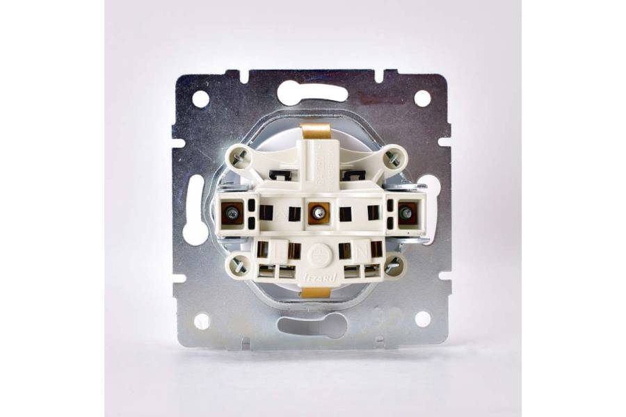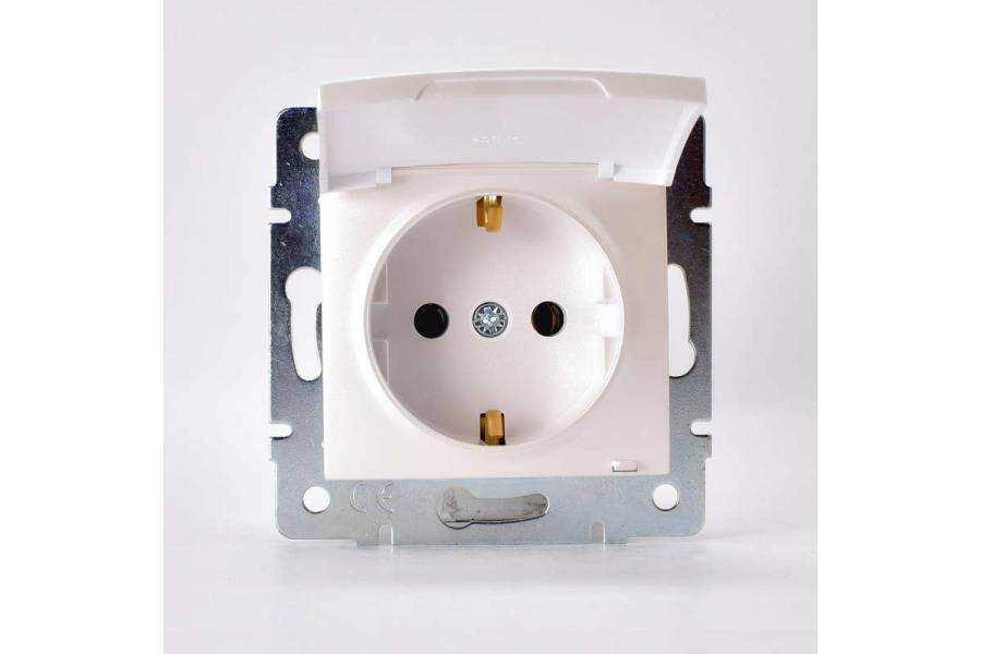 Механизм розетки 1-м СП Karina с заземл. с крышкой термопласт жемчуж./бел. перламутр. LEZARD 707-3088-123B