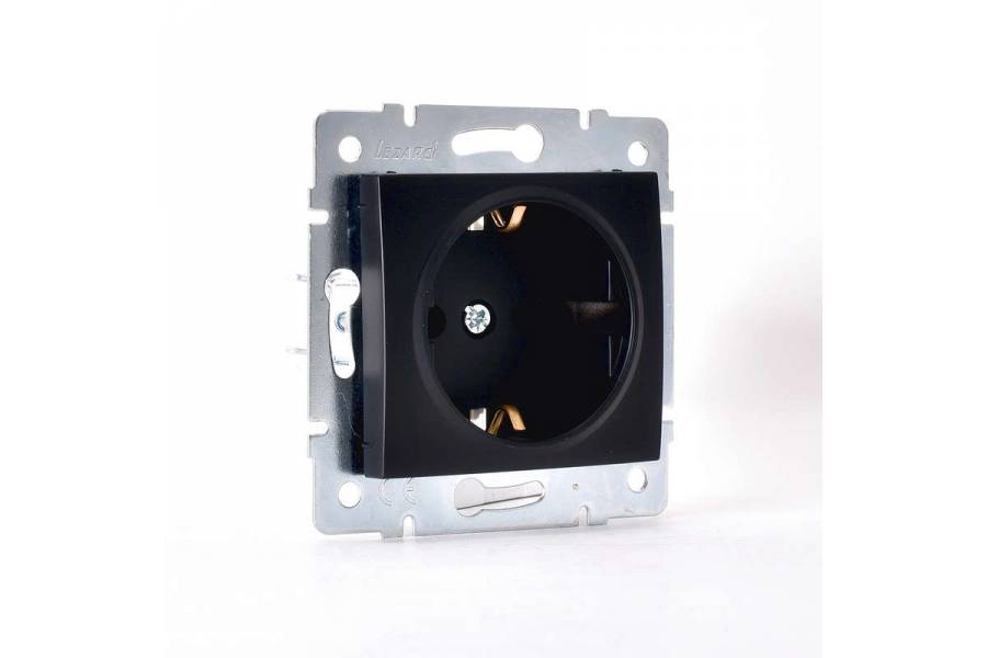 Механизм розетки 1-м СП KARINA термопласт с заземл. черн. бархат LEZARD 707-4288-122B