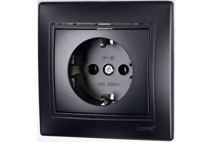 Розетка 1-м СП Мира керам. с заземл.черн. бархат LEZARD 701-4242-122