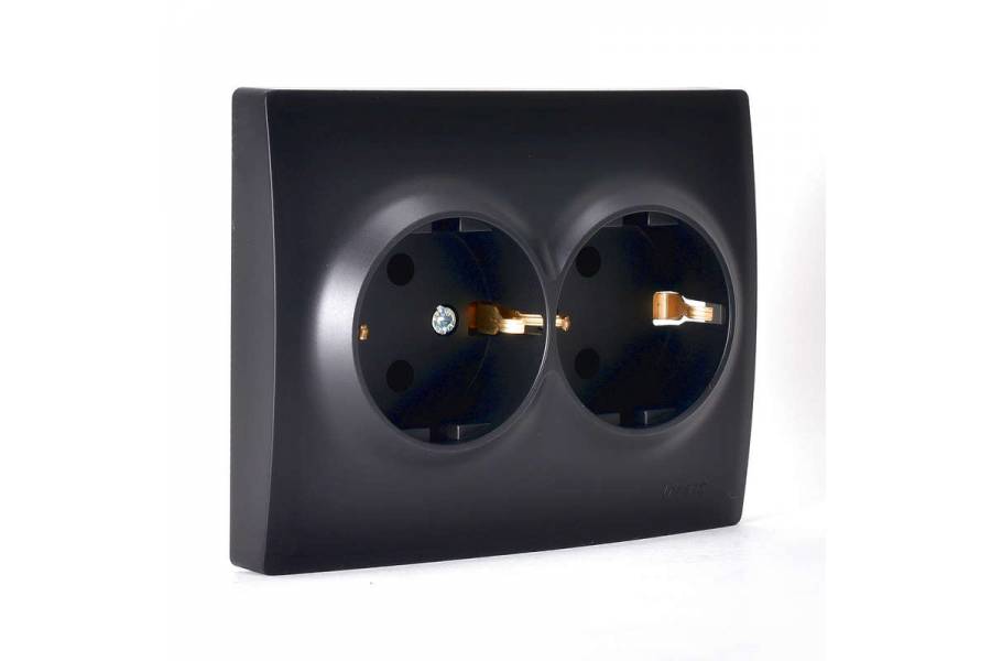 Розетка 2-м СП KARINA термопласт с заземл. черн. бархат LEZARD 707-4200-127B