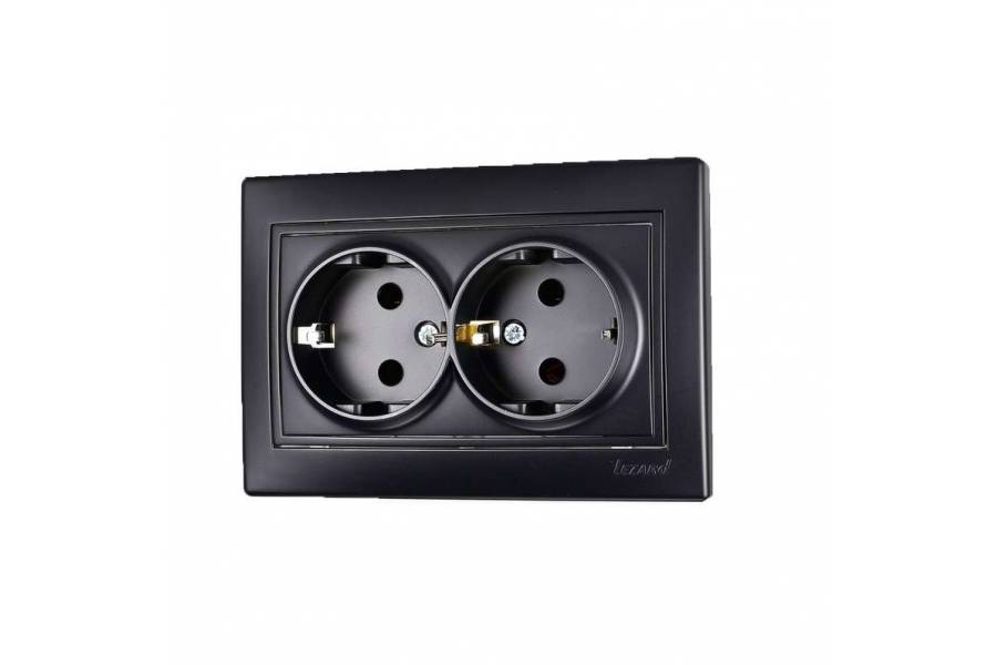 Розетка 2-м СП Мира 16А IP20 с заземл. керам. черн. бархат LEZARD 701-4242-127