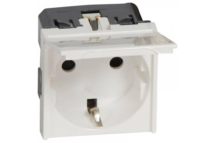 Механизм розетки 1-м СП 2мод. Mosaic 16А IP41 антибактер. 2P+E с заземл. с крышкой безвинт. клеммы бел. Leg 077219