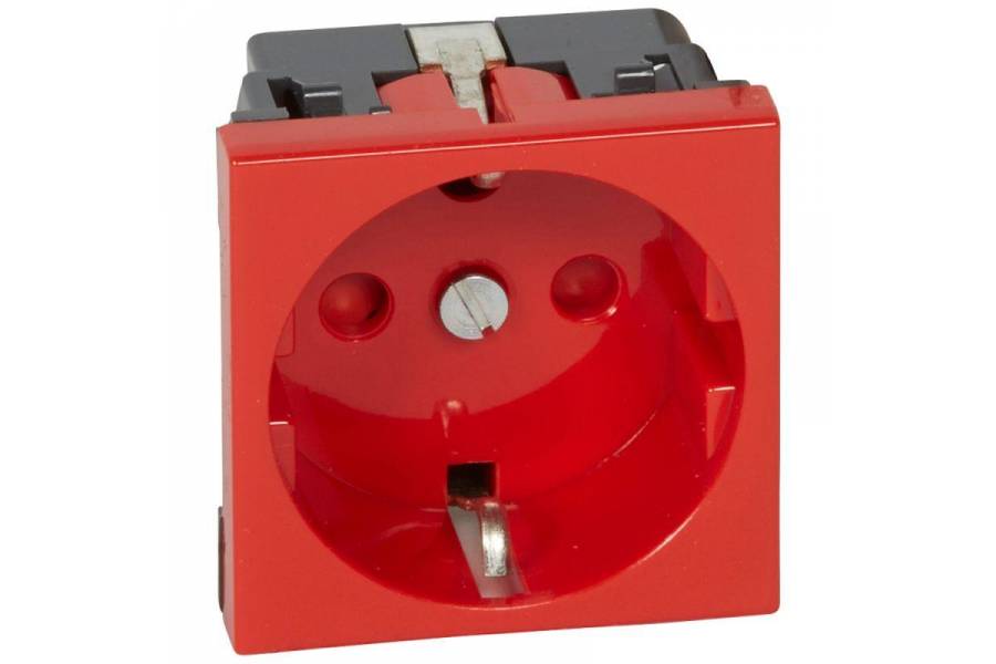 Механизм розетки 1-м СП 2мод. Mosaic 16А IP20 правый с заземл. немецк. стандарт винт. клеммы с механич. блокировк. красн. Leg 077214
