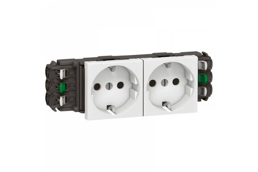 Механизм розетки 2-м СП 4мод. Mosaic 16А IP40 2х2P+E с заземл. безвинт. клеммы для кабель-канала DLP бел. Leg 077402