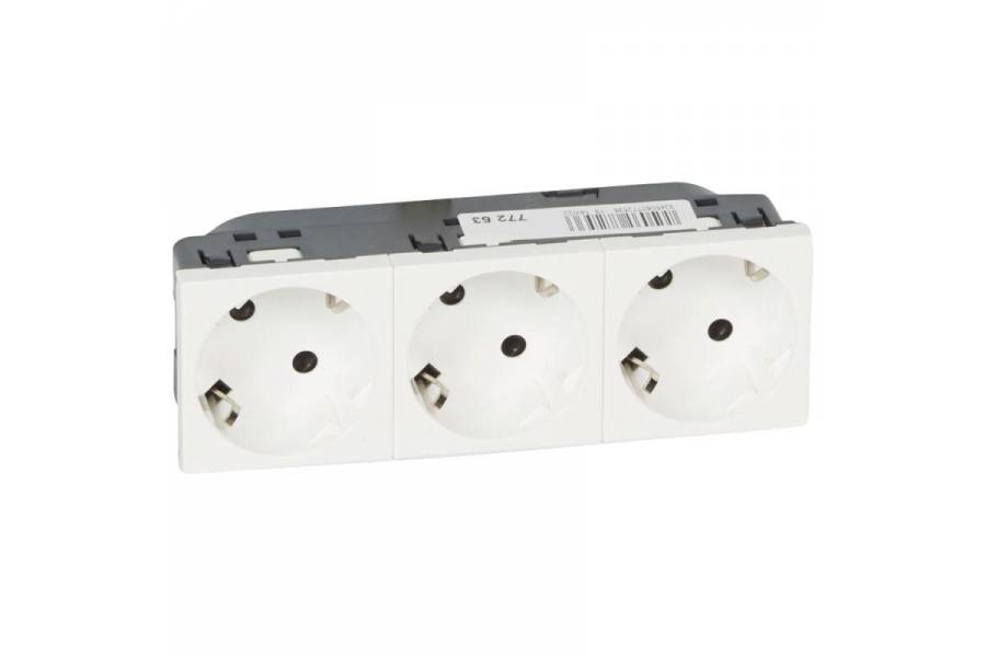 Механизм розетки 3-м СП 6мод. Mosaic 16А IP40 45град. 3х2P+E с заземл. бел. Leg 077253