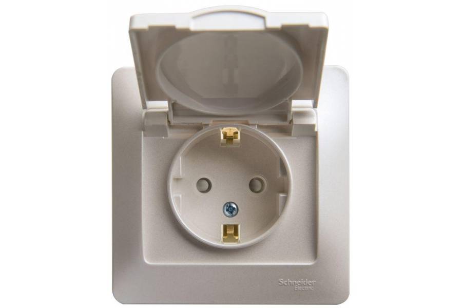 Розетка 1-м Glossa 16А с защ. крышкой защ. шторки с заземл. в сборе IP20 перламутр SchE GSL000646