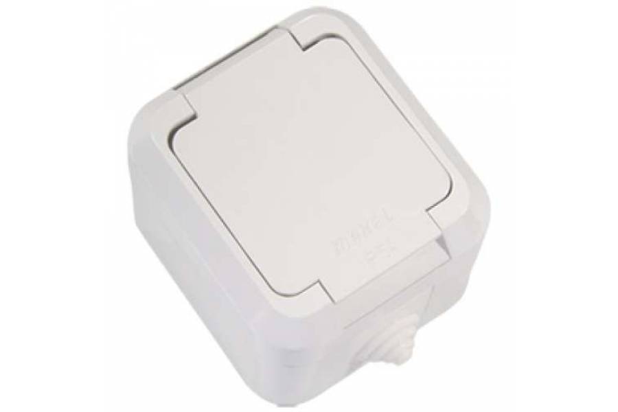 Розетка 1-м ОП 16А IP44 с заземл. с крышкой п/герм. бел. Makel 18304