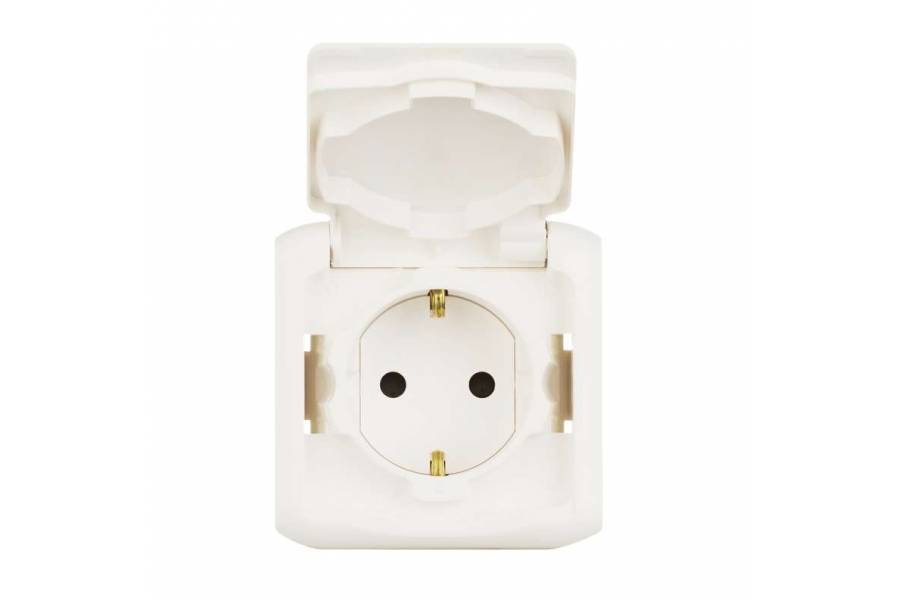 Розетка 1-м ОП Quteo 16А IP44 250В 2P+E с заземл. защ. шторки с крышкой бел. Leg 782321