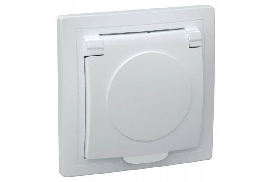 Розетка 1-м СП Кварта РСб10-3-КБ 16А IP20 с заземл. с крышкой бел. IEK ERK15-K01-16-DM
