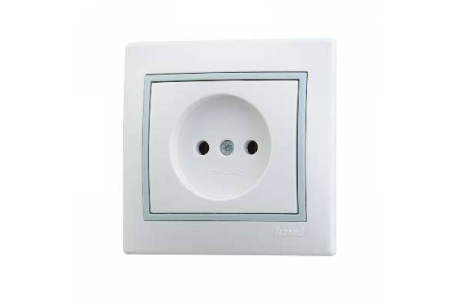 Розетка 1-м СП Мира 16А IP20 без заземл. с сер. вставкой керамика бел. LEZARD 701-0215-121