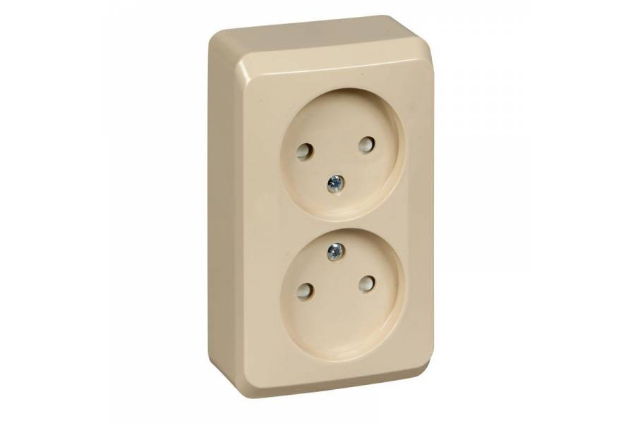 Розетка 2-м ОП Этюд 16А IP20 защ. шторки без заземл. крем. SchE PA16-006K