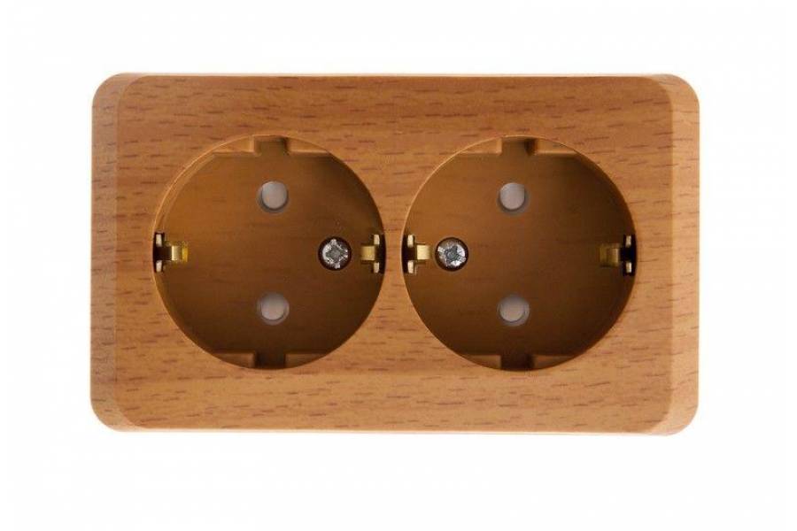 Розетка 2-м ОП Этюд Дача 16А IP20 250В с заземл. защ. шторки бук SchE PA16-008T