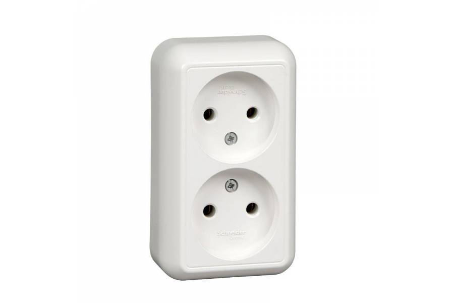 Розетка 2-м ОП Прима 16А IP20 без заземл. без защ. шторок монтаж. пласт. (розн. упак.) бел. SchE RA16-213M-BI