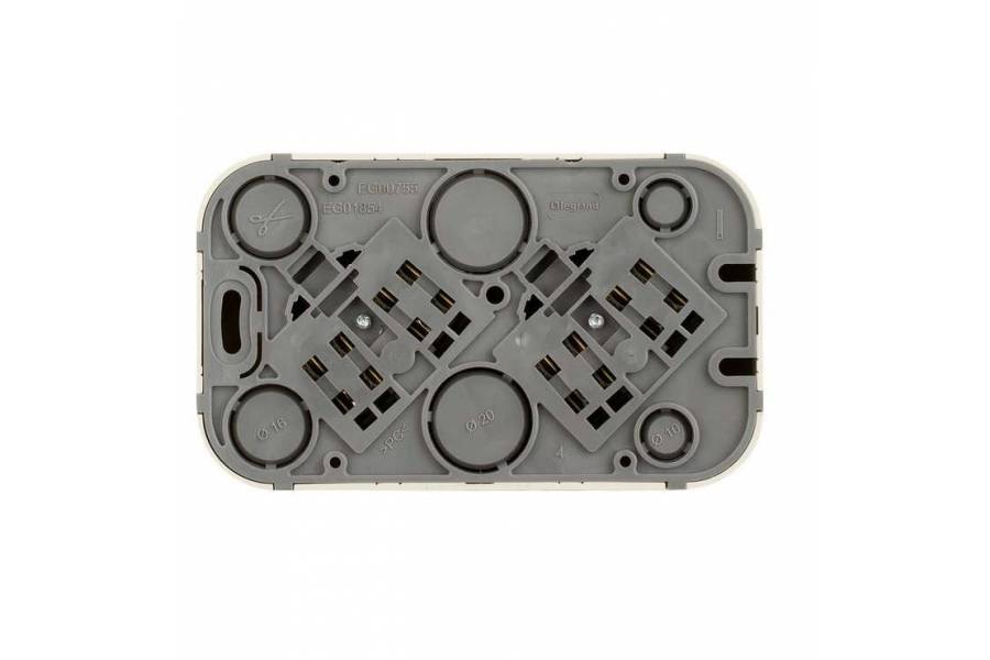 Розетка 2-м ОП Quteo 16А IP20 250В 2х2P+E с заземл. без защ. шторок бел. Leg 782213