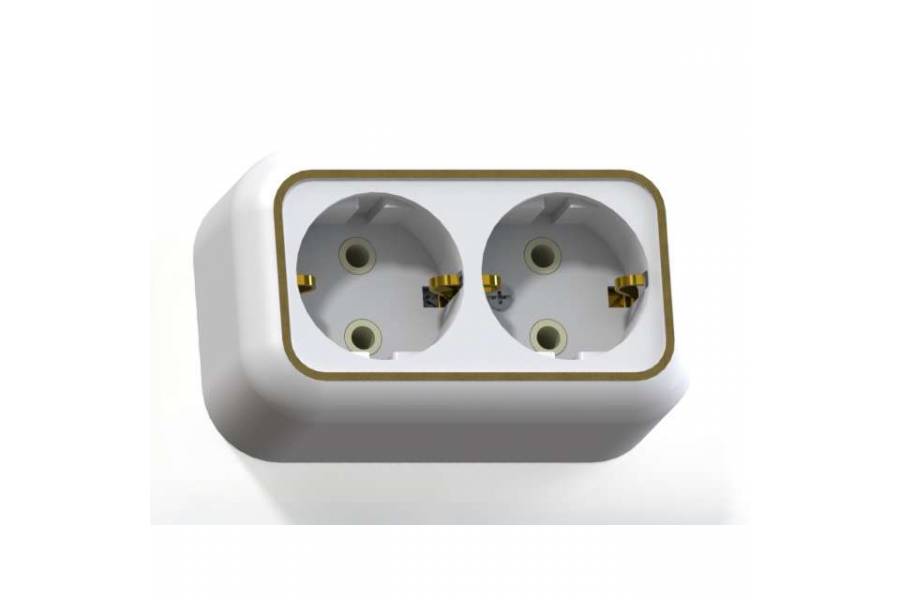 Розетка 2-м ОП Валентина РА16-826 16А IP20 с заземл. бел./зол. Кунцево 5419