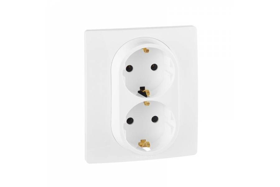Розетка 2-м СП Etika 16А IP20 250В 2P+E с заземл. немецк. стандарт винт. клеммы в сборе бел. Leg 672223