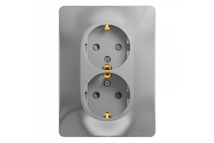 Розетка 2-м СП Glossa 16А IP20 с заземл. защ. шторки в сборе алюм. SchE GSL000326
