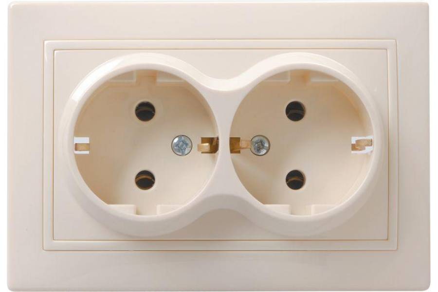 Розетка 2-м СП Кварта РС12-3-ККм 16А IP20 с заземл. без защ. шторок крем. IEK ERK24-K33-16-DM