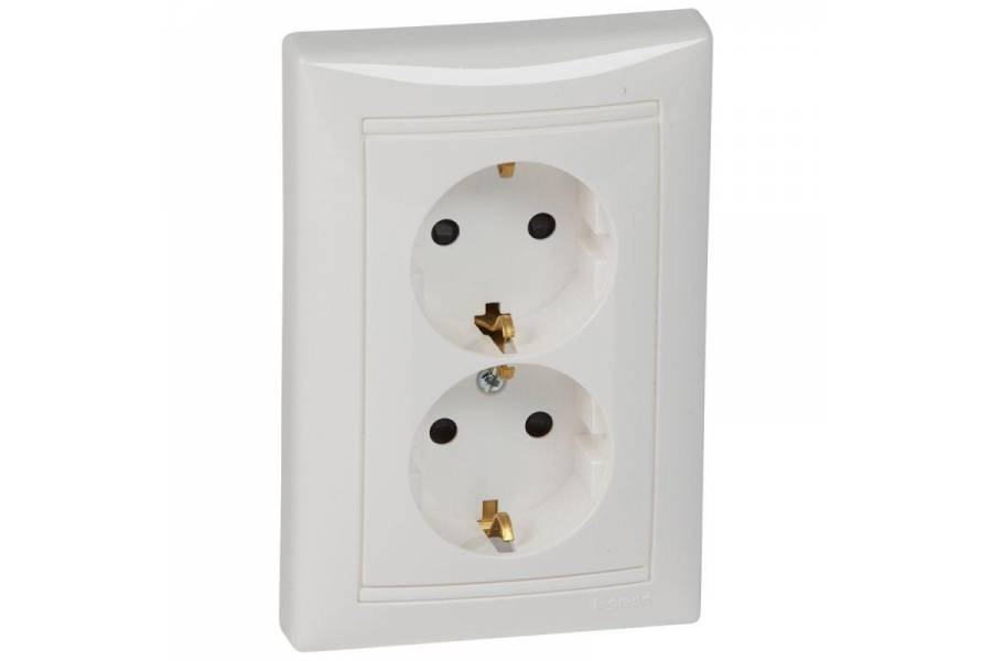 Розетка 2-м СП Valena 16А IP20 2х2P+E с заземл. защ. шторки немецк. стандарт в сборе бел. Leg 774427