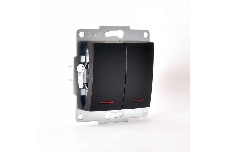 Механизм выключателя 2-кл. 1п СП Karina 10А IP20 с подсветкой черн. бархат LEZARD 707-4288-112