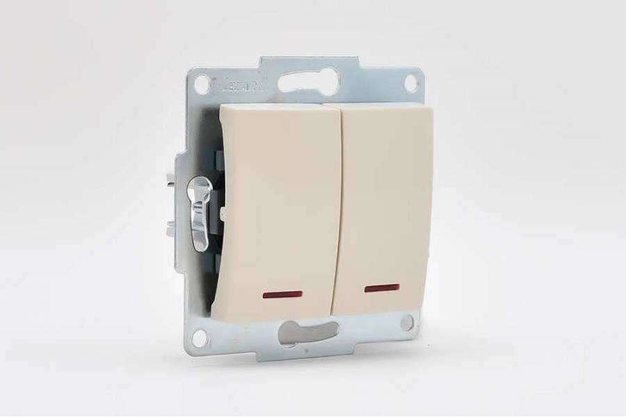 Механизм выключателя 2-кл. 1п СП Karina 10А IP20 с подсветкой крем. LEZARD 707-0388-112