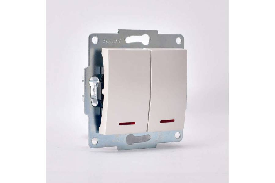 Механизм выключателя 2-кл. 1п СП Karina 10А IP20 с подсветкой жемчуж./бел. перламутр. LEZARD 707-3088-112