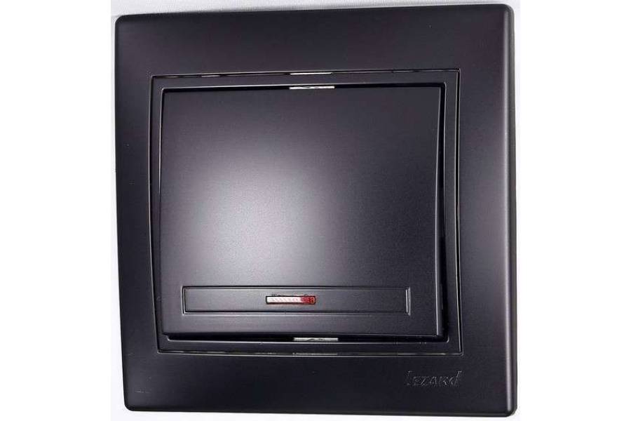 Выключатель 1-кл. 1п СП Мира 10А IP20 с подсветкой со вставкой черн. бархат LEZARD 701-4242-111