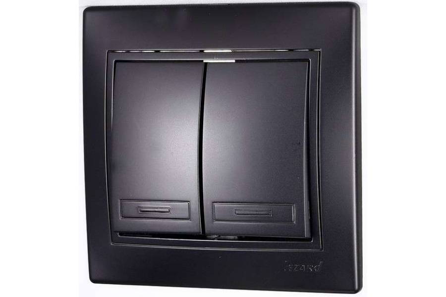 Выключатель 2-кл. 1п СП Мира 10А IP20 со вставкой черн. бархат LEZARD 701-4242-101