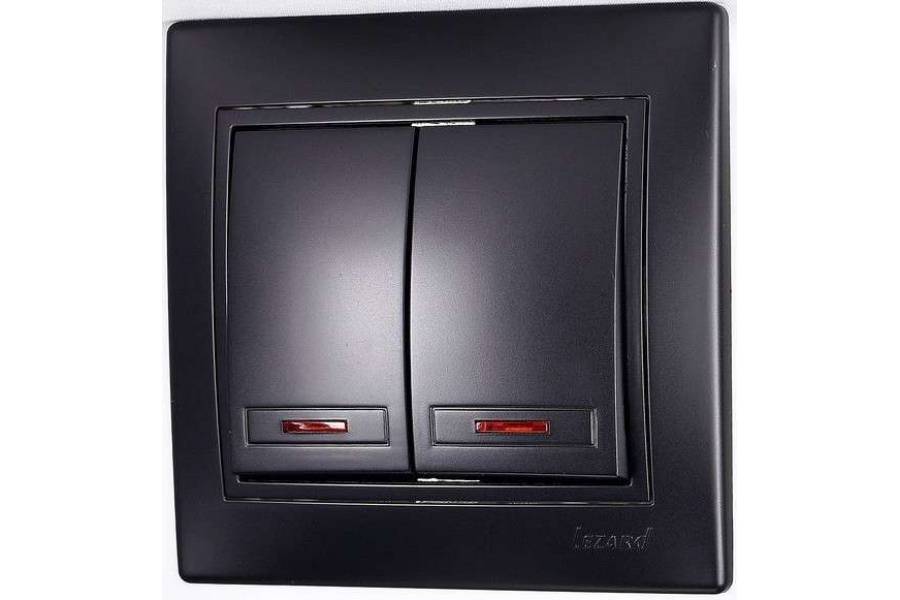 Выключатель 2-кл. 1п СП Мира 10А IP20 с подсветкой со вставкой черн. бархат LEZARD 701-4242-112