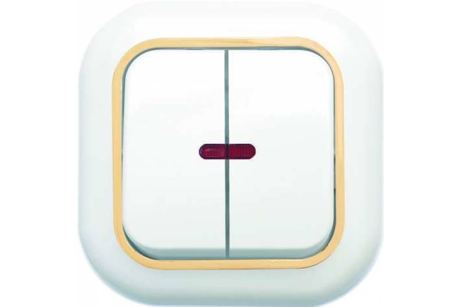 Выключатель 2-кл. СП Валентина 10А IP20 С56-175 с индикацией бел./зол. Кунцево 7650