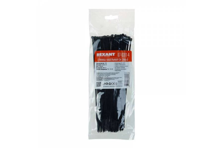 Хомут кабельный 2.5х200 нейл. черн. (уп.100шт) Rexant 07-0201-4