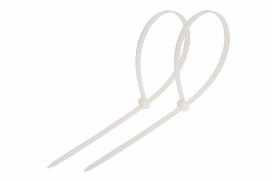 Хомут нейлоновый (кабельная стяжка) 300 х 4мм белый REXANT предназначен для крепления или обвязки в жгут кабелей и проводов, крепления гибких гофротруб, а также других предметов к несущей поверхности или для соединения между собой. Такая стяжка используются при проведении электромонтажных работ, при монтаже структурированных кабельных систем, для бытовых нужд, а также в других отраслях народного хозяйства. Представляет собой гибкую полоску из нейлона высокой прочности (полиамид-66) с замком на конце. Полиамид-66 – кристаллизующийся конструкционный материал имеющий высокую твердость и механическую прочность, отличающийся высокими электроизоляционными свойствами. Простой и удобный монтаж осуществляется вручную (следующим образом: большим пальцем левой руки прижать замок к пучку, а правой рукой затягивайте петлю), либо с помощью специального инструмента REXANT арт.12-4521 или 12-4541 (вставить конец затяжки в замок и затянуть до полной фиксации пучка, после чего отрезать выступающую часть бандажа). Не рекомендуется перегибать бандаж при затяжке. Хомуты нейлоновые гарантируют качество, оперативность и экономичность профессионального электромонтажа, обеспечив максимально надежную фиксацию предметов.
