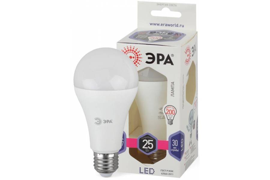 Лампа светодиодная A65-25W-860-E27 грушевидная 2000лм ЭРА Б0035336